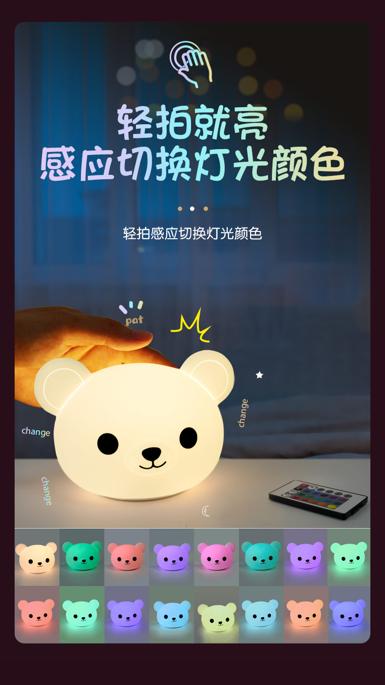 卡通可愛小熊拍拍燈夜 硅膠拍拍燈