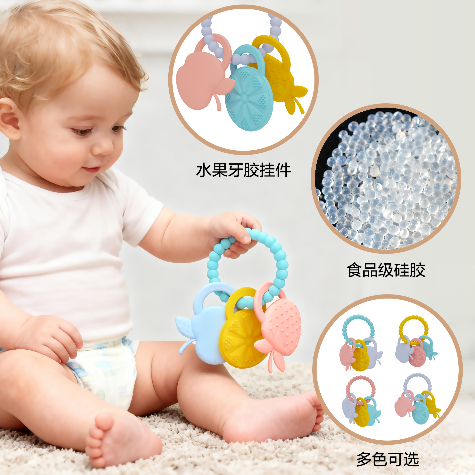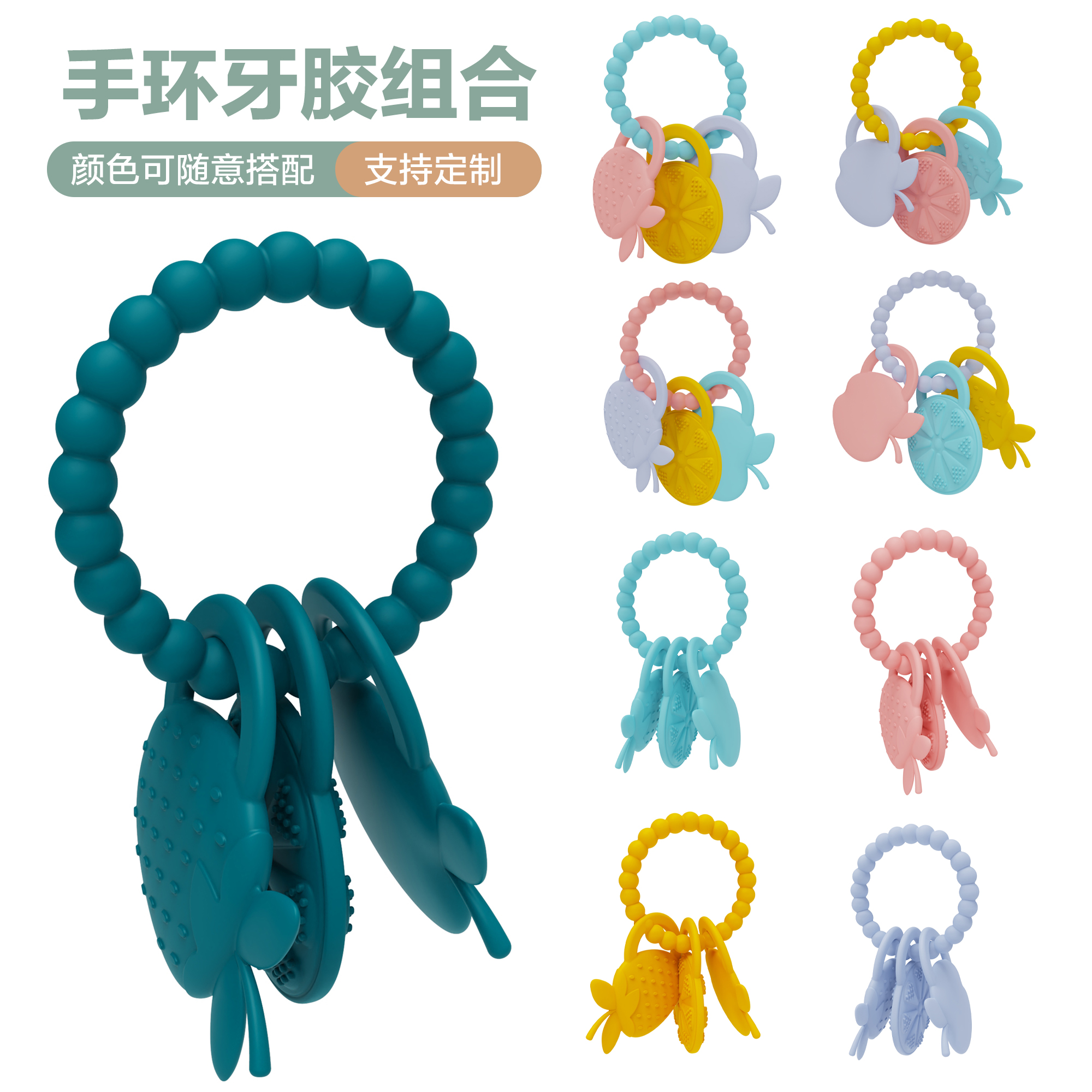您的位置:首頁 > 產(chǎn)品中心 > 硅膠嬰童用品 > 牙膠 > 亞馬遜新生嬰兒硅膠牙膠防吃手圓環(huán)食品級可握咬玩具手環(huán)母嬰牙膠