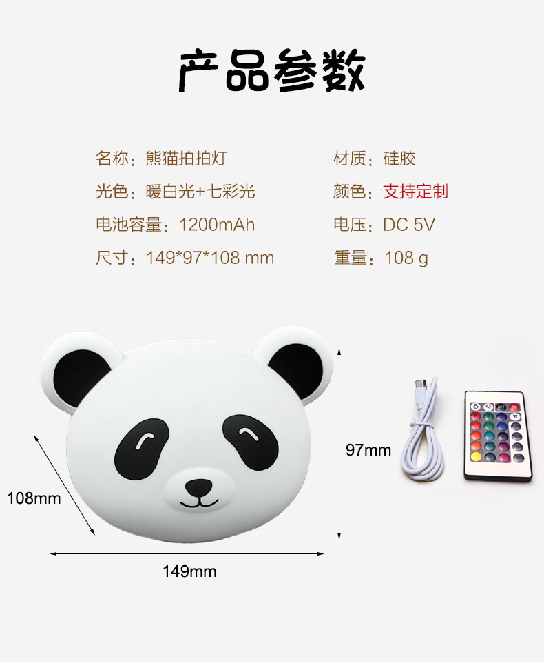 您的位置:首頁 > 產品中心 > 硅膠家居用品 > 拍拍燈 > 熊貓拍拍燈 創(chuàng)意夜燈硅膠卡通發(fā)光玩具充電拍拍燈 可加印LOGO批發(fā)